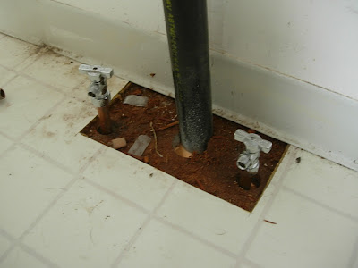On Saturday morning I woke to a fairly large puddle in the downstairs bathroom. Such a drag. Fortunately, I didn't have any solid plans for the day so I was able to tackle the problem quickly. Here is the culprit - the connection point from the galvanized pipe to the copper.